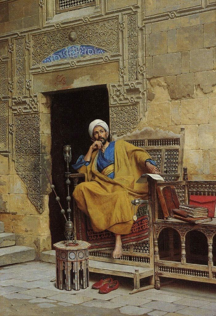 In disbelief at the easy success of my gambit, I continued to berate him in a meaningless but rhetorically imposing fashion; his head sank lower and lower to the ground, until he kissed my slippers and vowed to serve my will, provided I would refrain from recounting this grave sin to the sultan’s Chief Eunuch’s Secretary’s slave, or to anyone else in the palace who might wish his head relocated to a position uncomfortably distant from his shoulders.
