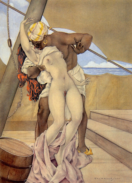 My pirate partner reached our port on the appointed day, his hold full with the fairest odalisques; but a nameless official, hearing advance word concerning one of those episodes of death and destruction that occur so often in the Occident, ordered the ship placed in quarantine.
