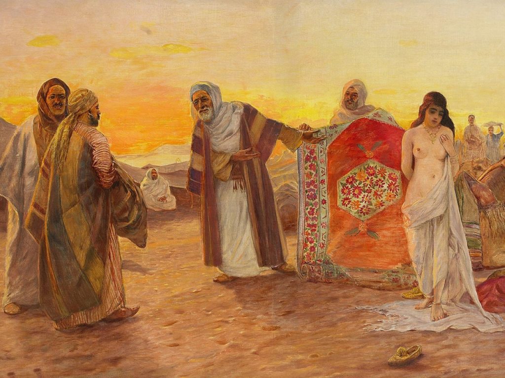 Yet circumstances had changed. I was on the verge of an important achievement, namely, formal recognition as the premier supplier of the sultan’s harem; and it made sense to display some material evidence of my success to burnish the aura of my rising luxury slaving brand, thereby increasing profit margins on every Occidental virgin I’d enslave, import, and sell in the future. Sadly, my income from the initial installment in the sultan’s premium odalisque subscription payment plan would be almost entirely consumed by the high-interest debt I’d taken on to effectuate it, and despite the rush of dinars that would soon inundate my coffers like the silt-rich floodwaters of the Great River, at present I could barely afford necessary business expenses like frankincense and turquoise-tinted toenail polish.